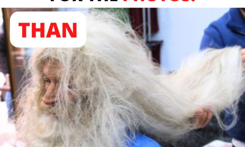 The video begins by showing a volunteer barber or stylist approaching a man whose hair is incredibly long, matted, and disheveled. It’s clear that his hair has been neglected for many years. The stylist begins the meticulous process of cleaning, cutting, and styling it with great care and patience. The man sits calmly as the stylist works, slowly revealing the person beneath the overgrown hair.
