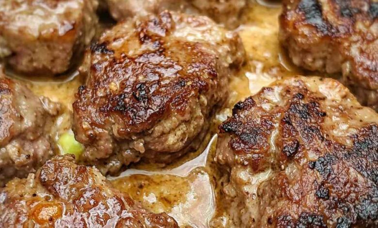 - Cover with foil and bake for 30–40 minutes, until patties are cooked through and tender.