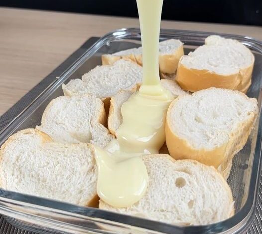 Beat the condensed milk with the bread! I make this dessert for years in 5 minutes!