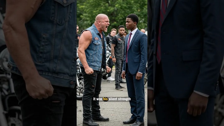 It started as a normal day in a quiet parking lot. A well-dressed young man stood calmly, minding his own business, when the roar of motorcycles shattered the peace. A group of burly bikers pulled in, their leader immediately setting his sights on the teen, seemingly judging him by his suit and tie.