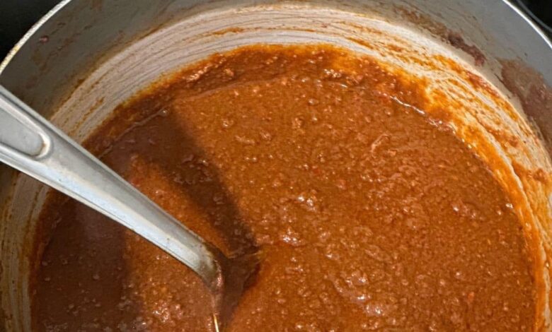 - Add ingredients: Add broth, tomato sauce, chili powder, cocoa powder, Worcestershire sauce, chili flakes, paprika, soy sauce, onion powder, garlic powder, and cayenne pepper.