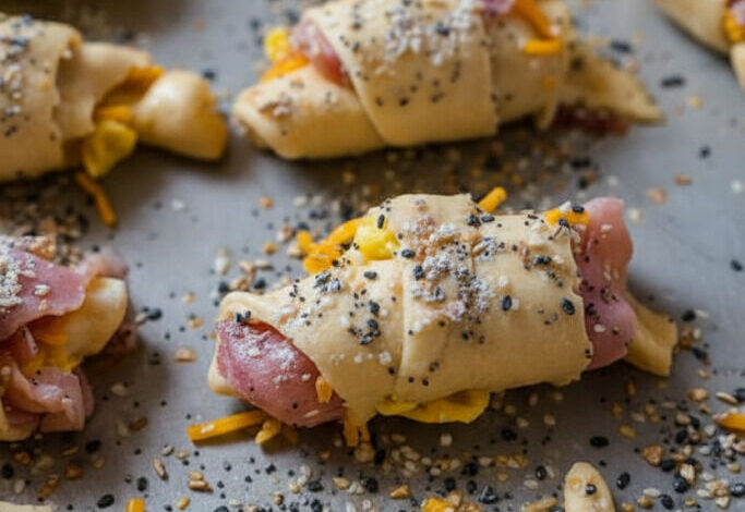 These Grab-and-Go Breakfast Rolls are the ultimate morning comfort food—flaky crescent rolls wrapped around fluffy scrambled eggs, savory ham, melty cheddar, and a sprinkle of green onion. Finished with a touch of everything bagel seasoning, they’re portable, satisfying, and irresistibly good.