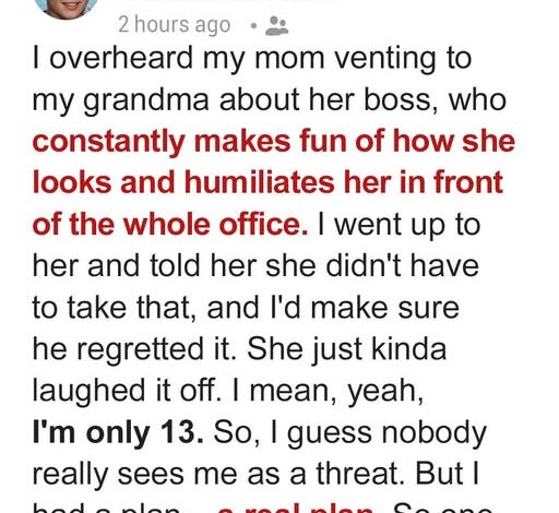 One night, I overheard Mom crying on the phone to Grandma. Her boss, Richard, had mocked her thrift store clothes in front of her coworkers, belittling her and making her feel worthless. My heart broke, and anger bubbled inside me. Mom brushed it off when I asked her about it, but I couldn’t let it go.