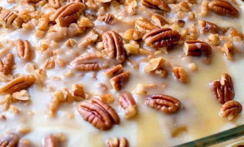 2. Add Pecans to Batter: Gently fold in the ½ cup of finely chopped pecans into the cake batter until evenly distributed.