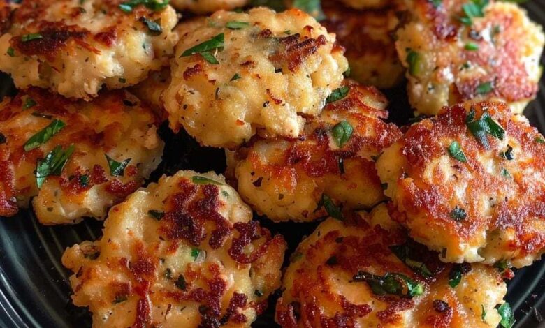 These fritters are a perfect way to use leftover chicken or canned chicken. Shredded chicken is combined with a flavorful mix of spices and breadcrumbs, then fried until golden brown and crispy.