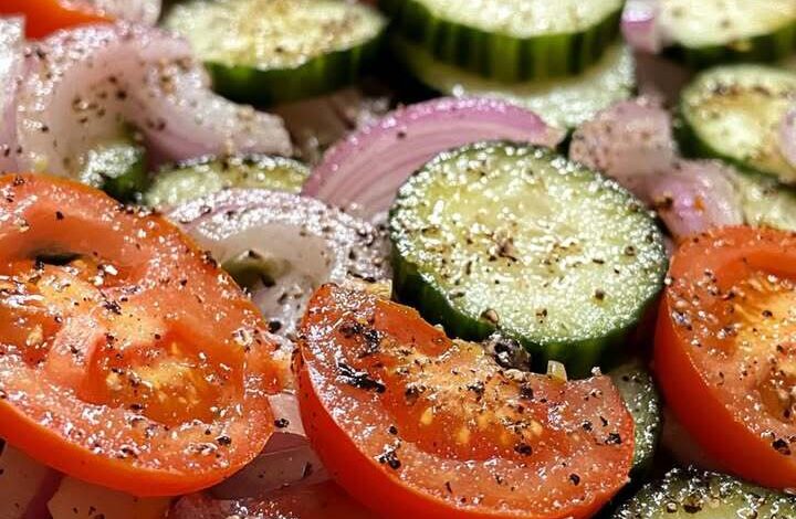 This Marinated Cucumber, Onion, and Tomato Salad is a light and refreshing side dish that’s perfect for a summer cookout or a simple weeknight meal. The crisp vegetables are tossed in a tangy vinaigrette, allowing the flavors to meld beautifully for a delicious and easy-to-make salad.