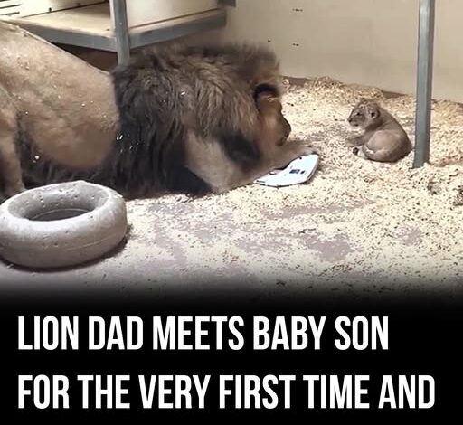 Lion dad meets baby son for the very first time and the reaction is priceless