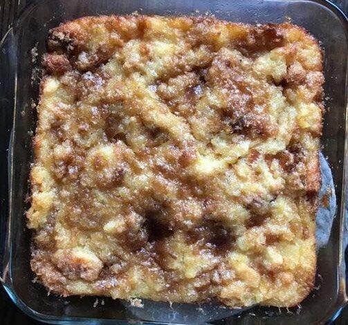 - Transfer to baking dish: Transfer the bread and pineapple mixture to the prepared 8×8 inch baking dish, spreading it out evenly.