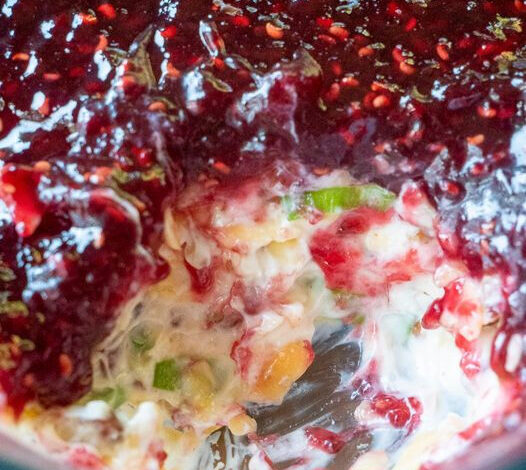 - Assemble the Dip: Spread the cheese mixture in a 9×9-inch baking pan or 9-inch pie pan in an even layer. Spread the 2 cups of raspberry preserves over the top of the cheese mixture in an even layer.