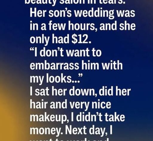 The salon owner shared a memory of a woman arriving one afternoon in great distress. The client was visibly upset and close to tears. Her son was getting married in just a few hours, and she was worried about her appearance. She explained her difficult situation honestly: “I don’t want to embarrass him with my looks…”