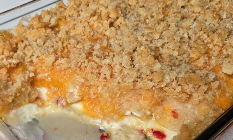 This Southern Pineapple Cheese casserole is a delightful blend of sweet and savory flavors, perfect for gatherings or as a unique appetizer. The creamy, cheesy filling combined with the sweet pineapple and crunchy topping makes for a crowd-pleasing dish.
