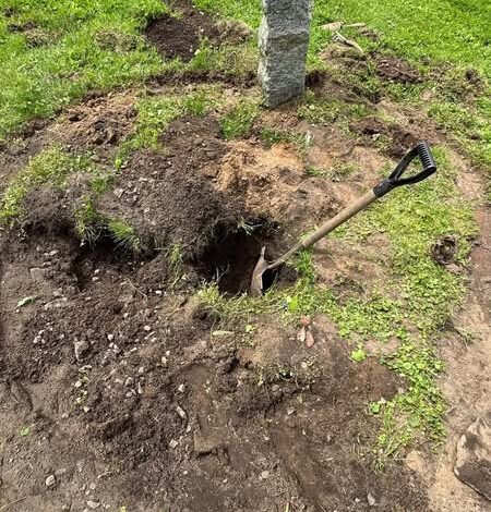 I grabbed a shovel and began to dig and hit on something hard. Another scoop and I saw the edge of brick or stone. Then I saw a granite post poking upward like it had stood there for all eternity.