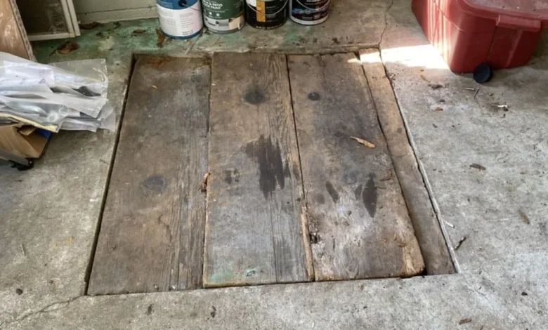 Underneath the wood was a solid chunk of corroded steel. Heavy. Covered in grime. I managed to get it up after some wrestling and some profanity. And there it was: a pit. Five by five feet, about six feet deep, possibly a hidden root cellar.