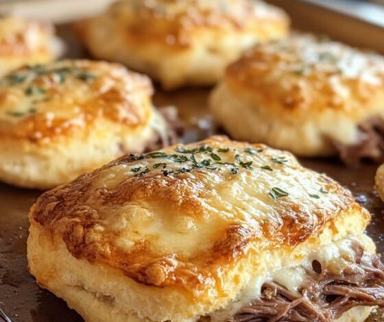 These Baked French Dip Biscuits are a delightful, bite-sized twist on the classic sandwich. Flaky refrigerated biscuits are stuffed with tender deli roast beef and melty provolone cheese, then brushed with a savory, herbed butter. Baked until golden brown, they’re perfect for dipping into warm beef broth, making them an ideal appetizer or a quick and easy weeknight meal.